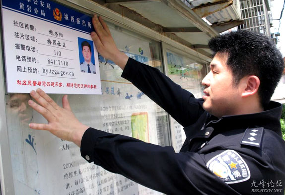 5月2日上午,城西派出所副所长鲍若阳来到自己的责任区梅园社区,将3块印有电话预约号码和网上预约网址的“双预约”警民联系牌,张贴在显眼处,方便群众在办事时预约民警。在“三访三评”深化“大走访”活动中,城西派出所为方便辖区群众办事,创新便民举措,推出了电话、网上“双预约”服务,并制作了一批“双预约”警民联系牌,将电话预约的号码、网上预约的网页地址,公布在各社区(村)的多个显眼位置。群众如果想找哪位民警办事,便可在家通过电话、上网联系,足不出户和民警如期预约,畅通了警民联系渠道。