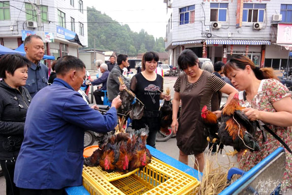 5月11日,宁溪镇前垟村胡国宾土鸡养殖场的土鸡一运到宁溪市场,顾客们立即争相购买。胡国宾利用村边溪滩用网隔开,每年分期分批边种植粮食、蔬菜作物;边繁殖嫩草及蛤蟆等小虫子饲养5000多只土鸡。他生态养殖的土鸡不但毛色艳丽,且营养丰富,肉味格外香美,赢得了广大顾客青睐。