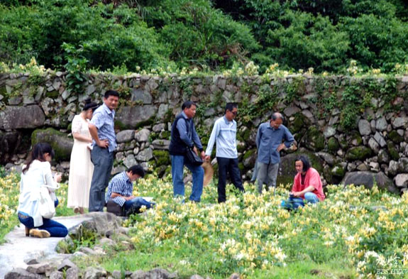 5月16日,上郑乡小英山等金银花基地金银花飘香,游人似织。该基地种植规模500亩,日摘鲜花达2000余斤,亩产可达万余元,成为当地农民增收致富捷径。因开花期花俏、味香,加上当地山区景美,各地前来观赏、摄影、写生的客人络绎不绝。