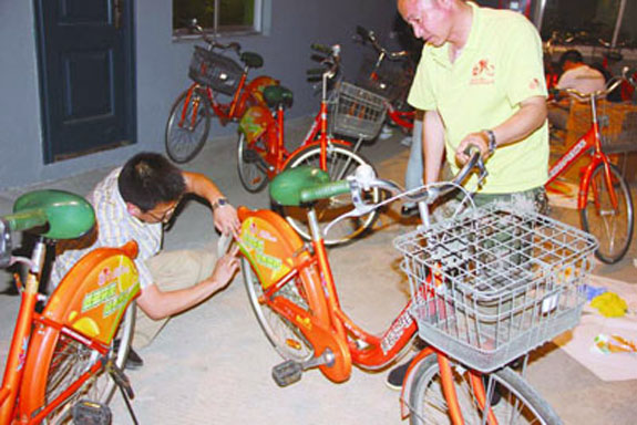 6月12日至17日,黄岩公共自行车公司积极响应环境交通铁腕整治行动号召,针对已运行半年的公共自行车进行挡泥板车贴翻新,公司全体员工加班加点,利用每晚18:30——22:30非工作时间进行翻新工作。