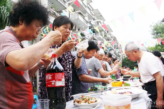 6月14日,东城街道城外洲社区举办了一场题为“温馨百家宴 浓浓邻里情”的活动。社区的居民们积极筹备,纷纷献出自己的绝活,亲手烹制最拿手的菜肴,共同打造了一场别出心裁的社区百家宴。席间穿插了小朋友拉小提琴、唱歌表演、知识竞赛等活动,有音乐,有歌声,有酒香,有笑语,其乐融融;美味佳肴,轮番品尝,切磋厨艺,人们回味着久违的温馨。