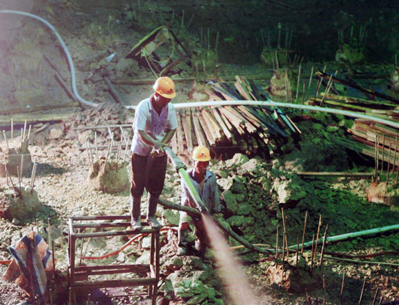 7月24日晚8时,区公租房、廉租房一期工程施工现场,施工工人正在紧张作业。近段时间,我区多高温天气,为了保障工程进度,除了白天以外,施工单位还利用夜间较为凉爽的天气环境抓紧作业,确保工程早日完成。