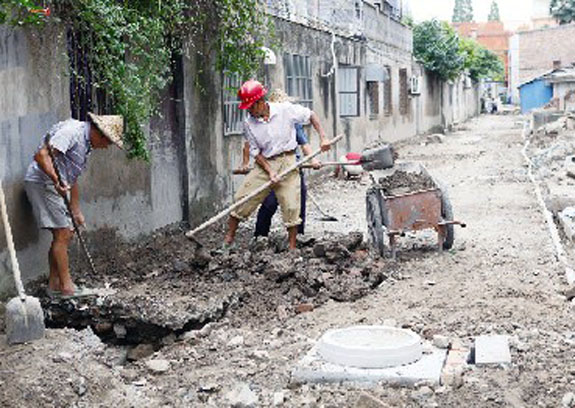 8月6日上午,施工人员正对西苑新村的道路进行施工改造。近日,区住建局全面铺开全区旧住宅区改造工作。由于建成时间较早,我区建成区范围内部分老居民小区房屋年久失修,配套设施缺损,环境脏乱差现象严重。我区按照政府主导、街道申报、居民自愿、因地制宜、分步实施、综合整治、配套建设的要求,通过改造,将逐步实现城市旧住宅区房屋居住安全、基础设施完善、环境整洁美化的目标。