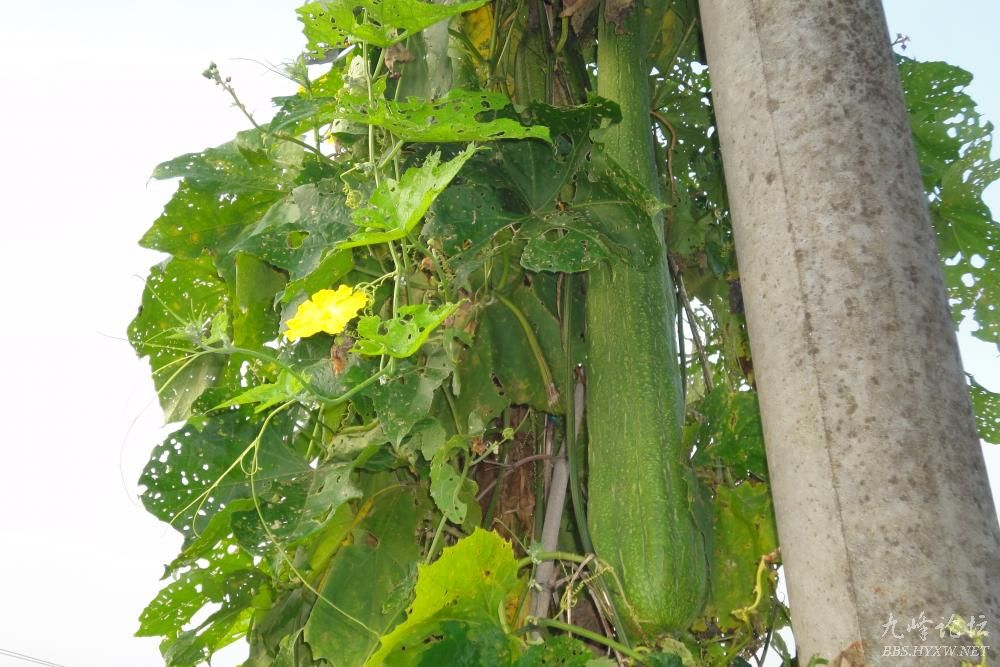 黄岩区宁溪镇横街居田野里的一电线柱旁,缠满了丝瓜藤蔓,可能有人栽种后经常忘了采摘,藤上吊满了丝瓜。8月18日早晨,有人发现藤上长了一根特大丝瓜,估计有1米长,7斤重。人们都说:“这样大的丝瓜真少见!”