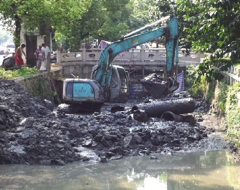 近日,区住建局对九峰河河道进行清理改造。九峰河多年未清理,常年淤结,严重影响排水。此次工程东起东复线九峰河桥,西至曙光巷九峰河桥,全长约600米,平均宽度约9米,改造后将增强排涝能力和水体自净能力,恢复河道生态。