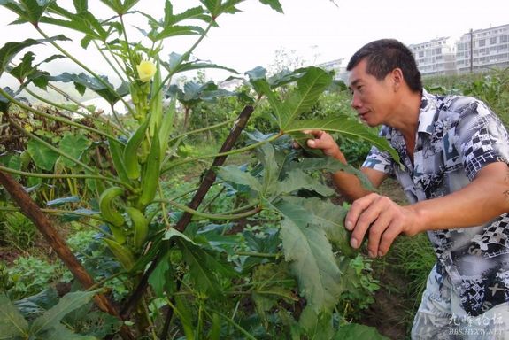 9月2日,笔者见黄岩区宁溪镇桥亭居一居民把自己种的黄秋葵果实当作礼物送给朋友品尝。黄秋葵原产于非洲,现我国各城市周边也有少量种植。据了解,它不但营养价值高,且有多种药用价值,在日、韩被称为“绿色人参”;美国则称它为“植物伟哥”。近年来宁溪有人从外地打工带来种子试种成功,圆果种和棱角种均有,当地群众纷纷通过各种渠道迅速发展,但市场上目前还不多见。