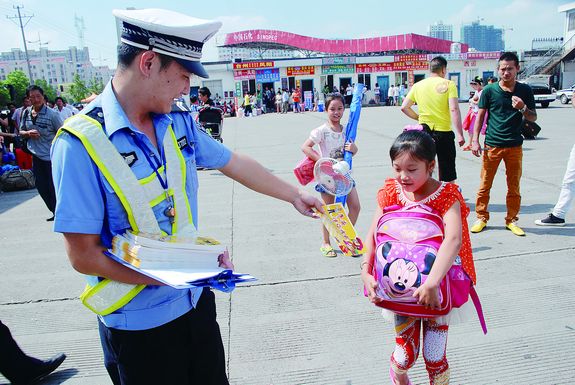 开学前几日,在台州西客站,交警们都早早就来到了这里向等候上车的“小候鸟”和他们的家长发放安全教育手册,提醒他们返乡路上要注意安全。 快开学了,来黄岩与父母亲人团聚的“小候鸟”们也即将带着留恋和不舍坐上返回家乡的长途客车。为了确保“小候鸟”们平安返乡,连日来,黄岩交警通过多种举措,全力为“小候鸟”们保驾护航。
