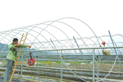 9月17日下午,院桥镇胡家桥村的200多亩番茄地里,种植户们正在搭建钢架大棚。连日来,该镇各地的番茄种植户都忙着为番茄搭建大棚,提前做好番茄移栽前的各项准备。