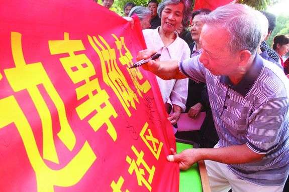 9月20日是第10个“公民道德宣传日”。日前,区文明办和塔苑社区联合在塔园前举办宣传活动,在印有“讲社会公德,从我做起,从身边事做起”的红色条幅上,社区居民纷纷拿起手中的笔,郑重签下自己的名字。活动中,50多位居民通过集体宣讲、向市民分发宣传资料、签名、清理垃圾等实际行动参与公民道德建设工作。