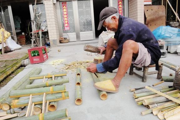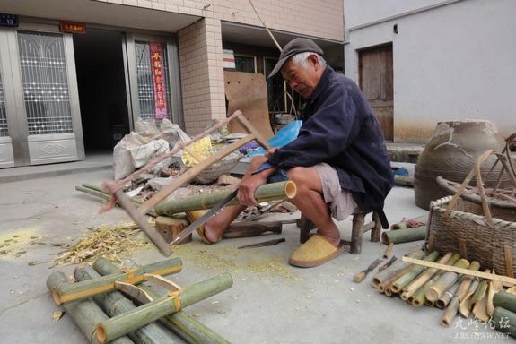9月29日,宁溪镇金岙村82岁老人王小更忙着给人制作竹躺椅。老王2岁时母亲就去世,艰苦的生活磨练出一位多才多艺的能人。他靠仔细观察无师自通,童年看艺人干活便自己会铸勺子等铜器具,会干油漆工。凡是生活上需要的工具一般他都自己制作,特别是竹类器具,除简单的外,还会制作竹桌、竹椅、竹菜橱以及农家筛粉的纱筛等等。老王制作的有些器具将成为非物质文化遗产,当地人们都称赞他是山村里的大能人