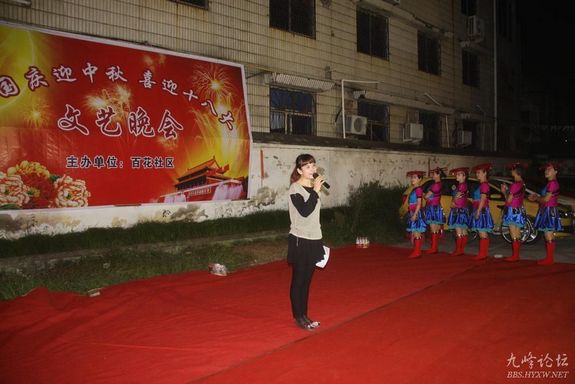 9月28日晚上,区东城街道百花社区在该社区操场上举行了“庆国庆、迎中秋——喜迎十八大”文艺演出活动。社区文艺爱好者用自己激昂的歌声和优美的舞姿来表达对祖国的诚挚祝福,为新中国成立63周年喝彩。在活动中同时还穿插了廉政知识、人口普查和计生知识抢答活动,让大家在愉悦的氛围中接受各种知识。