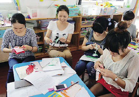民间美术是具有地域特色的美术工艺,是我国的传统文化,它以美化环境、丰富民俗活动为目的,在日常生活中应用、流传。东城街道中心幼儿园以创建民间美术为特色的校园文化建设初见成效,近日,该园聘请了中国民间文艺家协会剪纸专业委员会副主任、浙江省民间剪纸研究会会长沈雷老师为第三教研片的骨干老师授课,沈老师采取与学员互动的方式,对美术四大类即绘画、雕塑、工艺美术、建筑结合实例并进行了讲解、演示,详细介绍了剪纸的操作环节及重点。每位教师认真听讲,通过反复地操作练习不断创新。