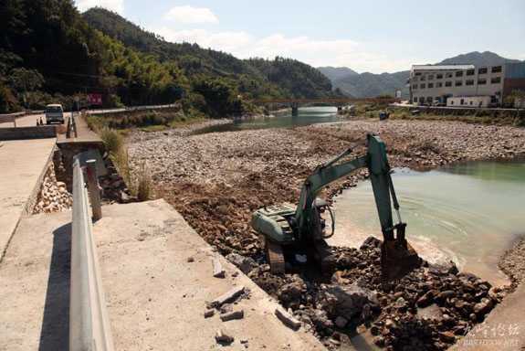 随着气候入秋,雨水渐少,一些紧靠溪涧的公路,水位开始降低,10月15日,屿洋线屿头乡政府门前半幅路基塌方开始进入修复,目前挖掘机正忙着堆填路基,接下来还有路面重新浇筑等环节,估计全面完成还要半个月。
