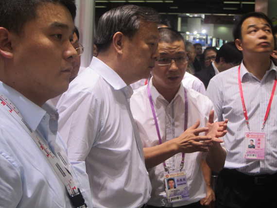 10月16日,省委副书记、省长夏宝龙(前中)来到第112届广交会西诺控股集团展位现场,与集团董事长李君亲切交谈,并对企业近年来的发展给予高度赞扬。