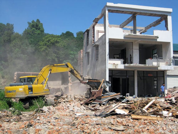 近日,南城街道82省道复线民建村旧房拆除现场掀起一股“喜迎十八大,加速推进赶工程”的热潮,拆除工作进展成效明显。目前,民建村旧房拆除工作基本完成,村内主体道路已经全线贯通。