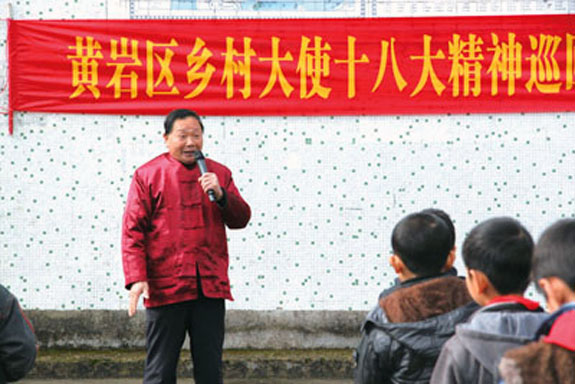 面对面接触,零距离宣讲。11月29日,乡村大使十八大精神宣讲团来到上洋乡小学、上下吉村等地,为当地群众送上精神食粮。通俗易懂的宣讲内容,原汁原味的表演形式,引来观众阵阵掌声。