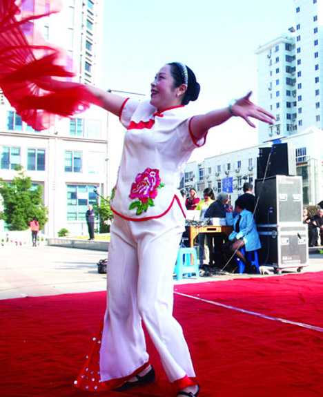 12月16日下午,东城街道文艺宣传队正在塔苑社区进行演出。近日,东城街道组织社区文艺爱好者把十八大主要内容和精神编成文艺节目送到各村(社)进行演出,向老百姓宣传十八大精神。