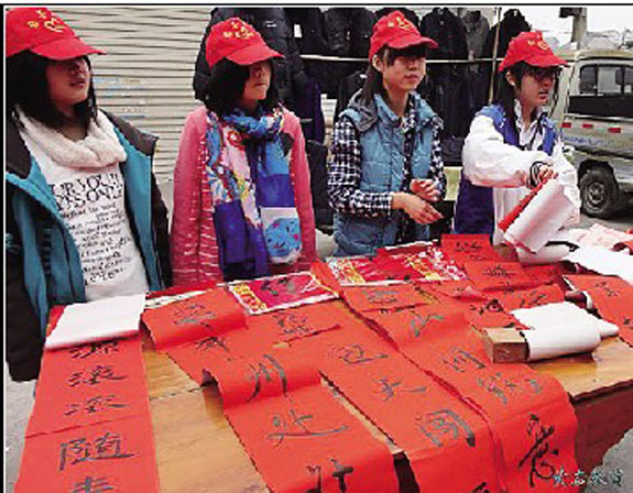 近日,黄二高师生带着亲手书写的春联前往南城十里铺村,给当地的村民送上火红的春联。黄二高的黄卫钢老师还现场为村民书写春联。本次写春联送春联活动共送出春联600余副,师生亲手书写春联近300副,受到当地村民的好评。