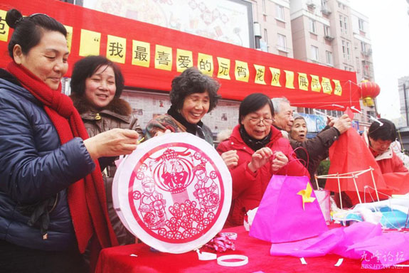 2月24日(农历正月十五)是我国传统佳节元宵节。2月24日下午,东城街道塔苑社区开展“我最喜爱的元宵花灯”展评活动。活动中,社区居民们纷纷利用家中旧挂历、饮料瓶、纸盒等废弃物制作成各式各样的环保花灯,并集中进行评比,这既活跃了节日气氛,又宣传了环保概念。