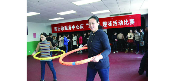 3月6日至7日,区行政服务中心举办了庆“三八”趣味活动,几百名女职工参加了单人跳绳、快乐呼啦圈、袋鼠跳、飞镖等比赛。