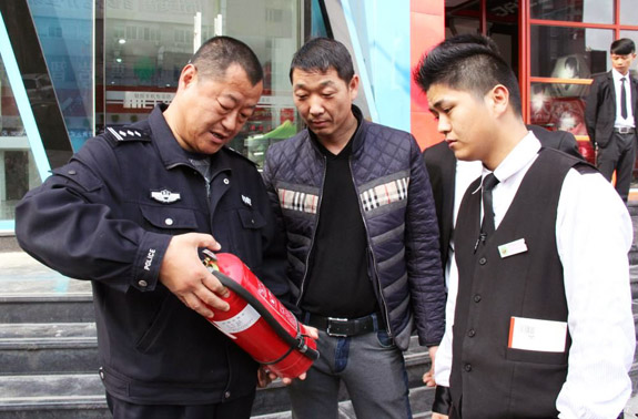 3月12日下午,民警在娱乐场所为工作人员讲解灭火器的正确使用方法