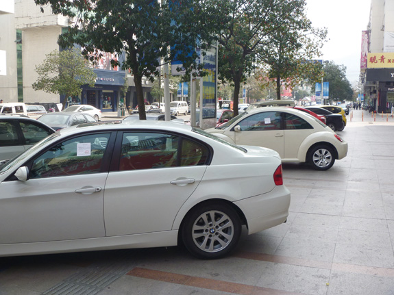 3月12日,记者在横街路看到,许多私家车车主将车子停在路边,不少车子直接压在了盲道上,给原本出行就不便的盲人带来了麻烦。