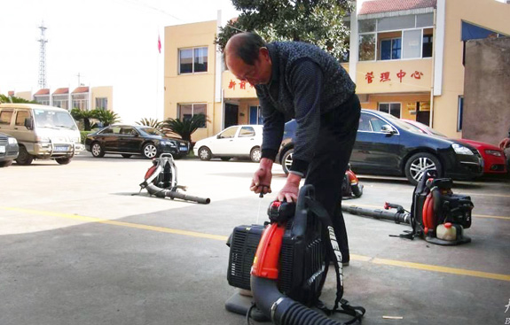3月14日下午,新前街道工作人员正在检修山林灭火器材