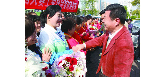 4月12日,区行政大楼前人头攒动,格外热闹,大家有的手捧鲜花,有的高举横幅,欢迎凯旋的我区腰鼓队员们。为期4天的2013年全国健身腰鼓大赛于日前落幕,我区代表浙江省参赛的浙江(黄岩)队和丰尚国际(浙江)队表现给力,夺得腰鼓大赛规定套路和自选套路两个金奖。