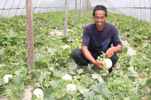 5月13日上午,在院桥镇洋岙村,种瓜大户於其友正在田间的大棚里忙着采摘成熟的白瓜。今年,於其友一共种植了11亩多大棚白瓜和西瓜,其中白瓜3多亩,但由于他精心培育,科学管理,金黄色的白瓜长势喜人,目前已进入采摘期。自从5月1日开摘以来,白瓜十分畅销,每天不少客户纷纷来田头,以每斤3.2至4元的价格收购,预计白瓜每亩经济收入8000元以上。