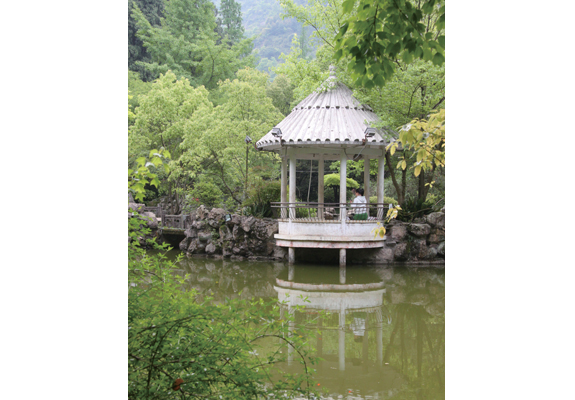 走进九峰公园,龙珠湖映入眼帘。湖面波平如镜,湖畔苍松翠柳,葱郁盎然,五月的龙珠湖显得更加生机勃勃。龙珠湖呈矩形弧角,面积5.5亩,始建1990年,竣成1991年春节。沿湖有长廊、虹桥、曲径、危岩,孤岛如螺髻,小亭若美人,翛然成趣。