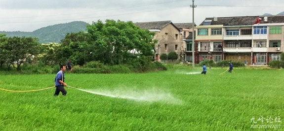 5月26日,在院桥惠民农业生产机械化专业合作社的的承包田里,社员们在农技人员技术指导下,利用高压喷雾器设备对刚播种的200多亩早稻进行栽后一代二化螟防治,以保证早稻顺利生长。据悉,黄岩区今年2500多亩早稻插种完成后,广大农户积极做好早稻田间管理,确保早稻丰产。
