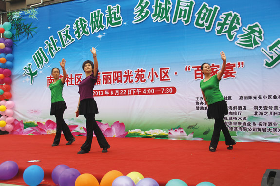 6月24日下午,西城南苑社区举办“文明社区我做起,‘多城同创’我参与”宣传文艺演出暨“百家宴”活动。在活动现场,居民们边品尝佳肴边看文艺演出,其乐融融。社区工作人员还当场发放“多城同创”倡议书,倡导居民积极参与美丽黄岩建设。