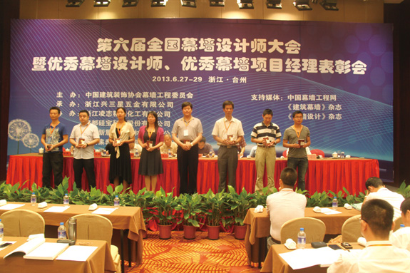 6月27日,由中国建筑装饰协会幕墙工程委员会主办,浙江兴三星五金有限公司承办的第六届全国幕墙设计师大会暨优秀幕墙设计师、优秀幕墙项目经理表彰会在黄岩耀达酒店举办。该大会是中国幕墙行业设计师、优秀设计师项目经理的年度大会,是幕墙行业专业技术、优秀设计和先进管理经验的交流盛会。
