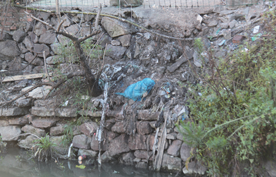▼在东官河(米兰风尚酒店附近河段)边上,倒着一大堆垃圾没有人清理。天气炎热,垃圾在阳光的暴晒下发出恶臭,让人难以靠近。