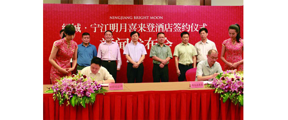 7月25日,绿城·宁江明月喜来登酒店签约仪式暨新闻发布会在黄岩耀达酒店举行。区委副书记、区长李昌道,区委常委蔡理明参加签约仪式。