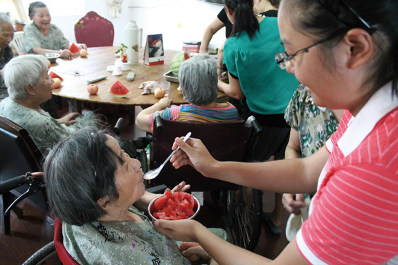 “谢谢你们给我们送来了水果,当代大学生真是了不起。”82岁的刘爷爷吃着西瓜笑着说,“我在这住了两年了,有人过来关心我们,真是开心”。 7月29日,烈日炎炎,骄阳似火,黄岩北城长塘敬老院的老人们却感受到了阵阵凉爽。当天,浙江财经大学财政与公共管理学院暑期社会实践小分队的学生们携带水果,为老人们送关怀、送祝福、送清凉,并围在老人身边,和他们拉起了家常。