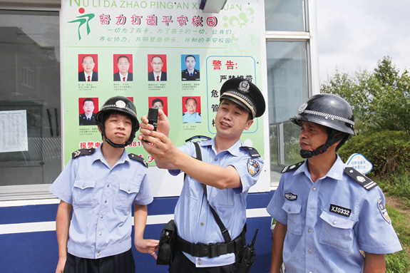 8月27日,黄岩公安分局头陀派出所民警在头陀小学指导校园保安如何应付突发事件。新学期即将开始,该分局各派出所都加强校园安保工作,检查安全设施,对保安人员开展培训。
