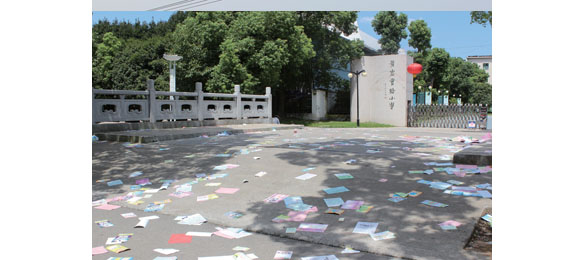 开学了 学校门口一地“传单”