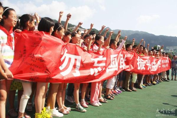 “我一定会不忘国耻,努力学习,奋发图强,用自己的力量为祖国的强大出一份力。” 9月18日,东城街道中心小学的朱兰珂在印有“勿忘国耻,振兴中华”的横幅上写下这样一句话。据了解,该校在“九一八”到来之际,通过给学生讲解历史、集体签名、看历史影片、出黑板报和宣誓等形式,教育学生牢记历史,勿忘国耻,奋发图强,振兴中华。