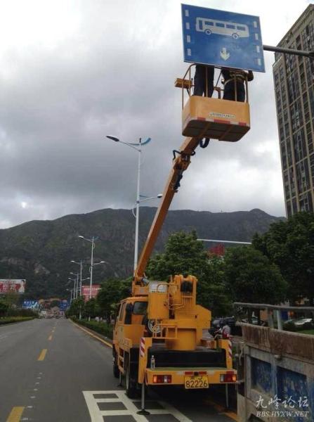 图为9月19日中秋佳节,黄岩公路人放弃休息,坚守岗位,抓紧时间赶划相关标线并增设标志。三天时间里,他们要完成震荡标线1200平方米,热熔标线1400平方米,道钉2000个,标志牌15块,路面图案20个。
