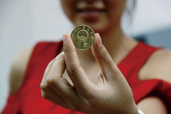9月23日上午,我区一市民在黄岩农合行一网点抢购到一枚限量版5元纪念币,因数量有限,刚上市就遭市民疯抢。记者看到,该纪念币正面主景图案为我国国徽,内缘上方刊“中华人民共和国”,下方刊“伍圆”及“2013”,背面主景图案为“和”字。据该行工作人员介绍,5元硬币的材质为黄铜合金,直径30毫米,与同面额人民币等值流通。
