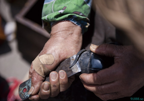 长年劳动的手,虽然年龄大了却仍然苍劲而有力。