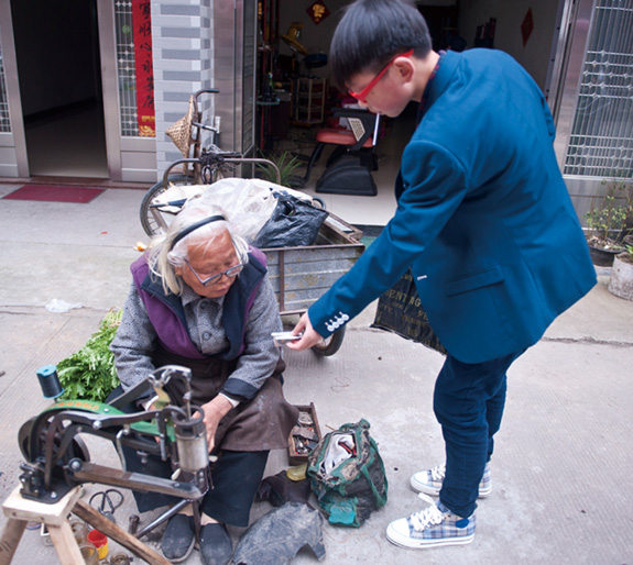 她收费低廉,补一只鞋一般只收1元钱。而且老少无欺,有多的必要找还给人家。