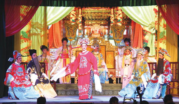 10月13日晚,小南门经联社剧场人头攒动,各社区的老年人早早在此坐等越剧开唱。晚上7时,黄岩小百花越剧团的演员们正式登场,献上一曲越剧《孟丽君》,庆祝我国首个法定“老年节”,祝愿在场的老人们节日快乐。