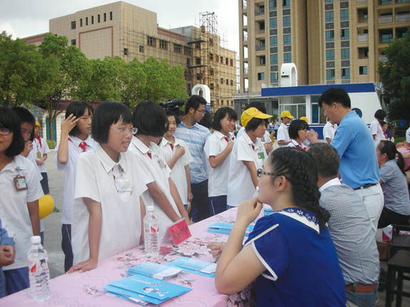近日,区普法办、教育局、司法局、关工委和反邪教协会联合,分别在宁溪中学和新前中学举行了“法律进学校”暨赠书、签名、咨询系列活动启动仪式。此次活动共有2000余人参加,图为学生正在了解相关知识。