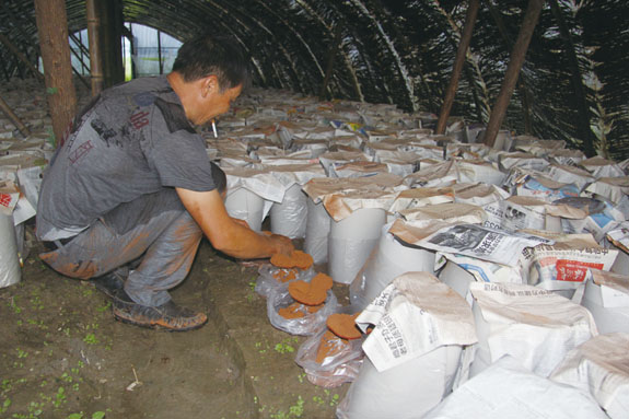 近日,在北洋镇康山村“康山绿色灵芝种植园”内,该园人工栽培灵芝获得成功,预计首批产量将达200斤左右,价值40多万元,开启了我区种植灵芝的先河,也对该镇拓宽农民增收渠道,发展优高农业有着重要的意义。图为该园负责人牟永胜正在收集灵芝上的孢子粉。
