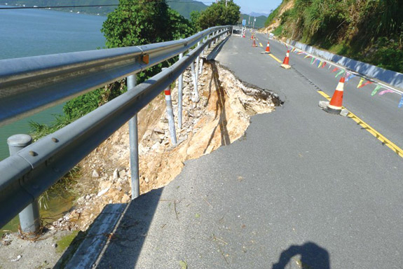 近日,黄前线25K+100M路段发生路面坍塌。由于该路段属于长潭水库沿线道路,道路与水面落差有十几米,车辆若从上面开过,路面板块无法承重,后果不堪设想。为了保证行车安全,区公路部门已封锁道路右侧车道,在醒目处设置安全标志,提醒过往车辆注意行车安全。