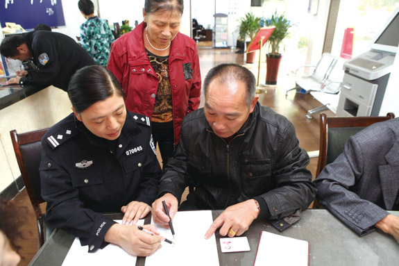 10月17日上午,黄岩公安分局出入境管理科民警热心指导老年人填写出入境办证表格。日前,该科推出了“关爱老人服务周”活动,开展免照相费、帮助填写表格、送证上门等服务,受到老年人欢迎。