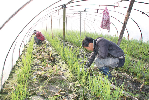 一年之计在于春。近日,头陀镇分水村茭白种植户解大伯夫妇一大早忙碌在田头,给大棚里的茭白除去杂草、淘汰劣苗,加强茭白田间科学管理,争取好收成。