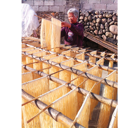 近来,天气晴好,在宁溪镇,村民趁着好天气正在晾晒刚加工好的麦面。据了解,目前麦面的价格每公斤在6元—10元,而这几天的好天气也带动了宁溪麦面的销售。